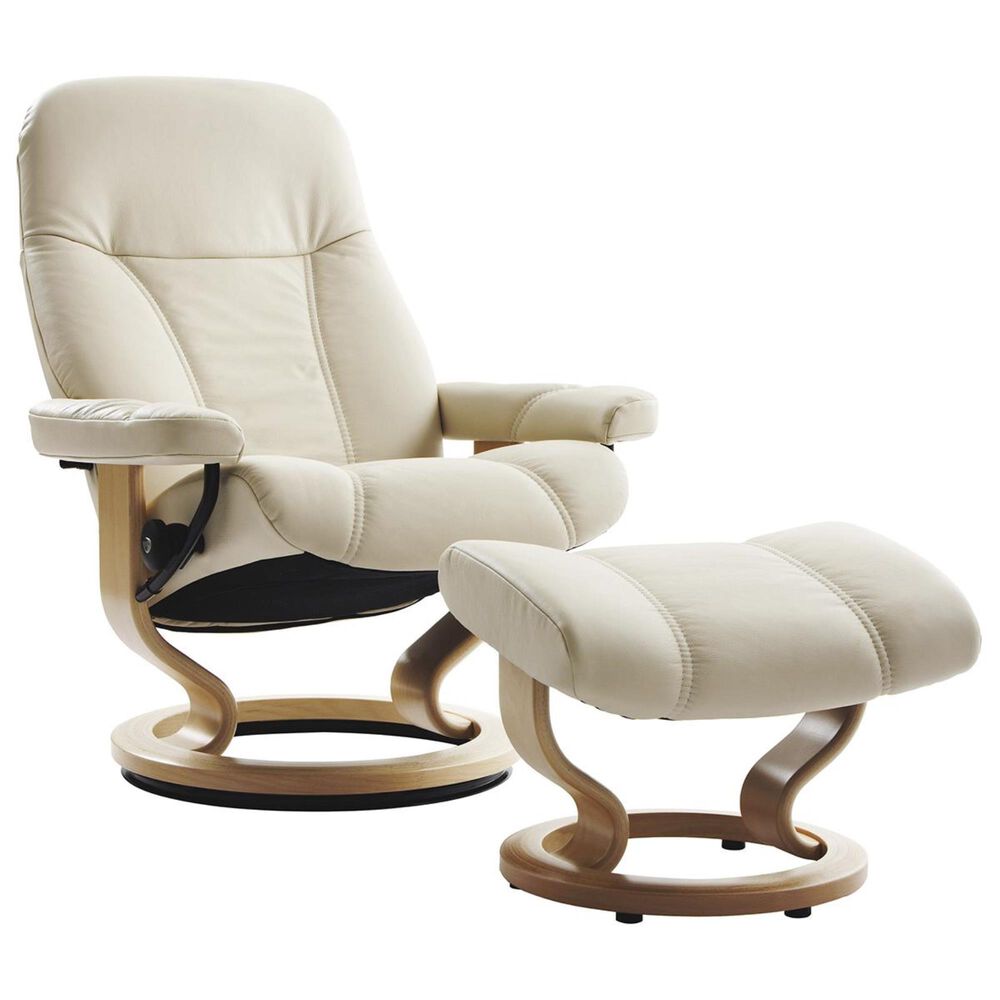Stressless Consul Large Chair And Ottoman With Natural Base In Batick Cream Nebraska Furniture Mart